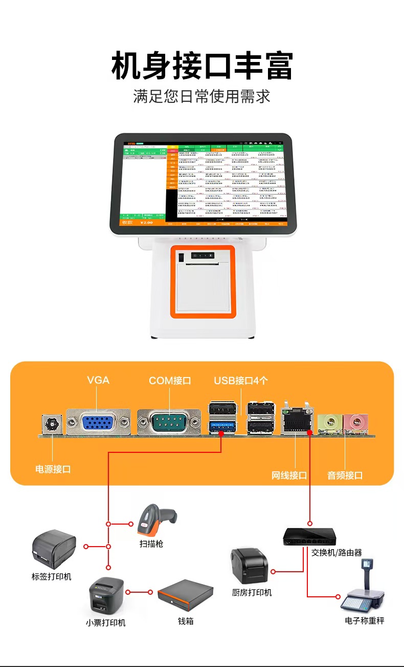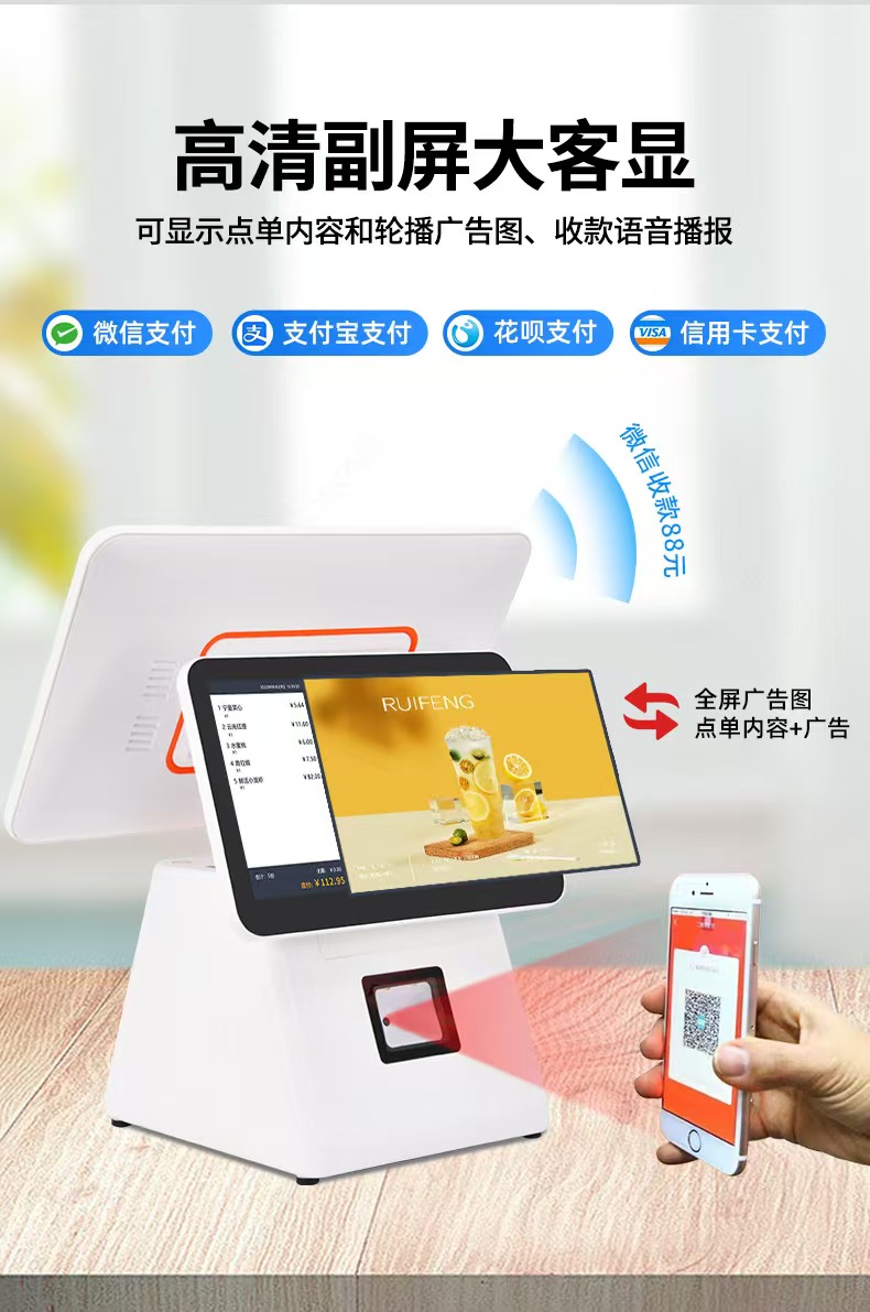 15.6吋雙屏觸摸屏超市餐飲奶茶服裝一體機(jī)